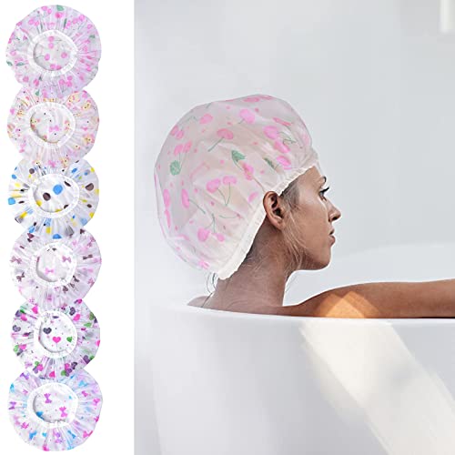 AvoDovA 6 Pezzi Cuffia da doccia, Riutilizzabile Impermeabile Cuffia Doccia con Elastica, Cuffia da Bagno Elastica Grande, Cuffia da Bagno Donna per Capelli Protezione per Spa, Salon, Viaggio
