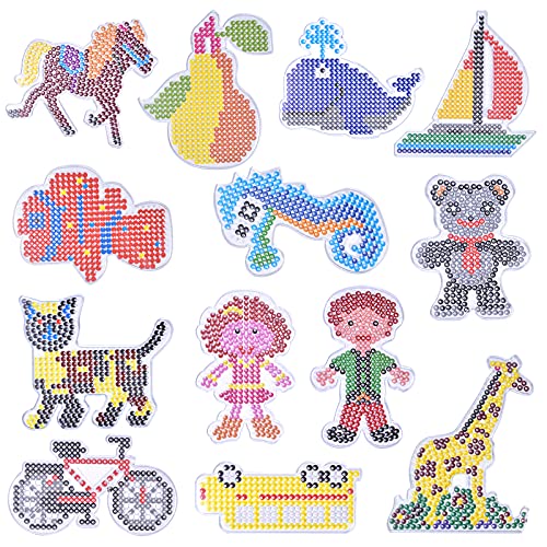 AvoDovA 13 Pezzi Perline da Stirare Pegboard, 13 Carte Modello Grafico, Animale Piastre per Decorazioni con Perline, Piastre di Perline, Perline a Fusione, Pegboard per Il Tempo Libero Creativo