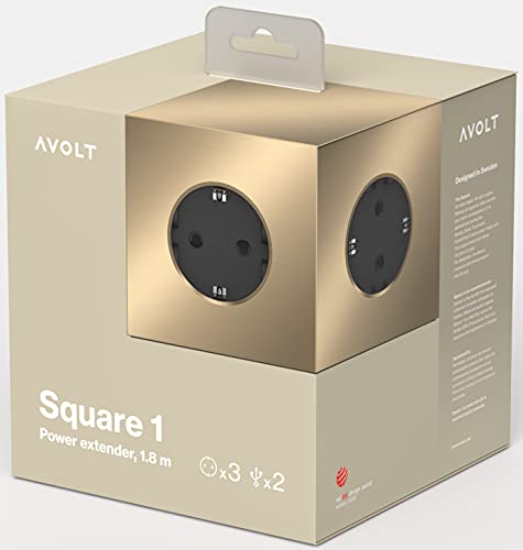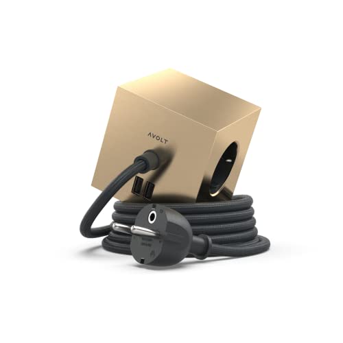 Avolt Multipresa Cubo - con attacco magnetico, multipresa di prolunga elettrica USB Cube con 3 prese e 2 porte USB - (oro)