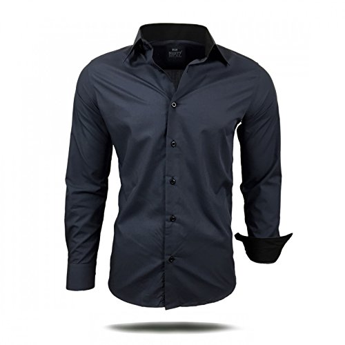 Avroni Camicia da Uomo Camicie Business Matrimonio Tempo Libero Slim Fit S M L XL XXL 44