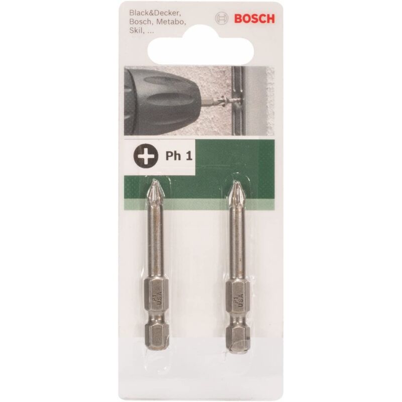 BOSCH - 2 BIT DI AVVIAMENTO PRESE ATTACCO ESAGONALE 1/4 PH 1 49MM Avvitamento semplice e affidabile con qualità Standard Bosch Per viti Phillips Testa fabbricata secondo ISO 1173 E6.3 Per l'uso diretto nei mandrini Dimensione della testa della vite: 1 Lunghezza mm: 49