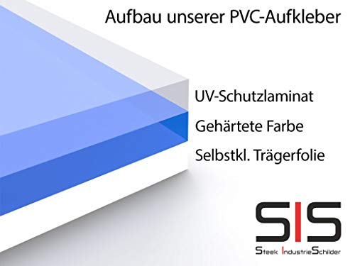 L'adesivo in PVC di alta qualità può essere applicato rapidamente e facilmente su tutte le superfici lisce grazie alla pellicola autoadesiva ed è quindi adatto per il commercio, la casa e per tutti gli hobby.