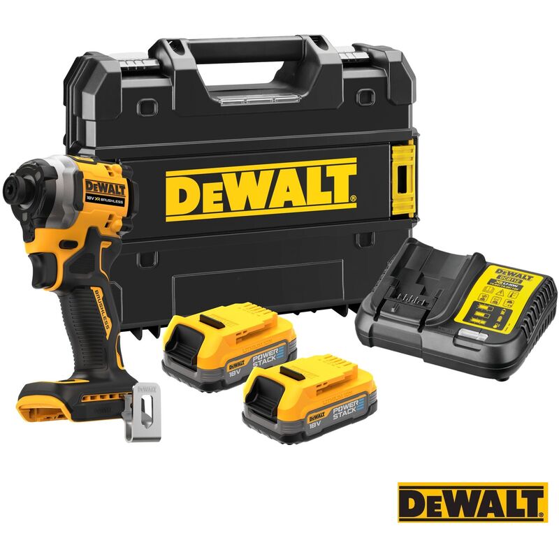 DEWALT AVVITATORE AD IMPULSI 1/4 2 BATTERIE 18V POWERSTACK 1,7 AH IN VALIGETTA CODICE PRODOTTO: DCF850E2T-QW COSA INCLUDE IL KIT 1 DEWALT AVVITATORE AD IMPULSI 1/4 DCF850 2 BATTERIE 18V POWERSTACK 1,7 AH 1 CARICABATTERIE RAPIDO 10.8V / 12V / 14.4V / 18V XR LI-ION DCB112 1 VALIGETTA TSTAK DATI TECNICI Voltaggio della batteria 18 V Velocità senza carico (RPM) 0-1000/2800/3250 Numero di modalità 3 Tasso di impatto per min. 3800 Peso del prodotto 0.9 Kg Altezza prodotto 200 mm Peso (batteria inclusa) 0.9 Kg Coppia massima 205 N/m Lunghezza del prodotto 101 mm DESCRIZIONE 3 luci LED ad anello per un' illuminazione uniforme senza ombre 3 Modalità e velocità di utilizzo compreso Precision Drive Motore brushless compatto (senza spazzole) Il più piccolo e potente avvitatore ad impulsi 18V XR offre maggior comfort e velocità di applicazione. Offre 206Nm in un corpo compatto di 100mm di lunghezza perfetto per tutte quelle applicazioni in spazi ristretti. 3 modalità d'uso per un maggiore