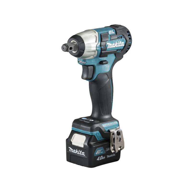 Consegnato in una scatola MAKPAC Leggero e compatto L'illuminazione a LED incorporata garantisce una buona visibilità della base di lavoro Solido: alloggiamento in alluminio con rivestimento Soft Grip Gancio per cintura posizionabile a destra e a sinistra Inversione del senso di rotazione
