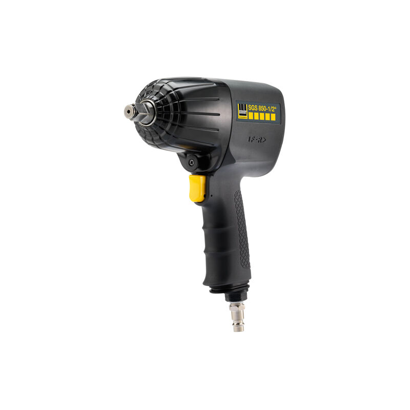 Avvitatore a impulsi Schneider SGS 850-G1/2 - L'avvitatore tuttofare Specialmente per i punti difficili da raggiungere grazie al design ridotto Per le riparazioni automobilistiche, l'ingegneria meccanica e le operazioni di assemblaggio Dati tecnici Montaggio attacco quadro da 1/2 Fabbisogno d'aria 8,2 l/s Coppia di allentamento 815 Nm Peso 2 kg Pressione di lavoro 6,3 bar Rumorosità 83 dB(A) Velocità 7000/min Dimensioni 183x69x230 mm