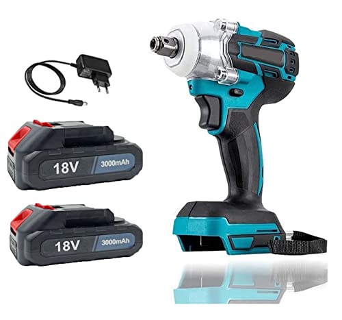 Avvitatore A Percussione A Batteria Senza Spazzole, Sostituzione Per Makita, con batteria da 2 * 3000 mAh e caricatore per Makita,Trapano A Batteria Da 1/2", 18 V con e LED