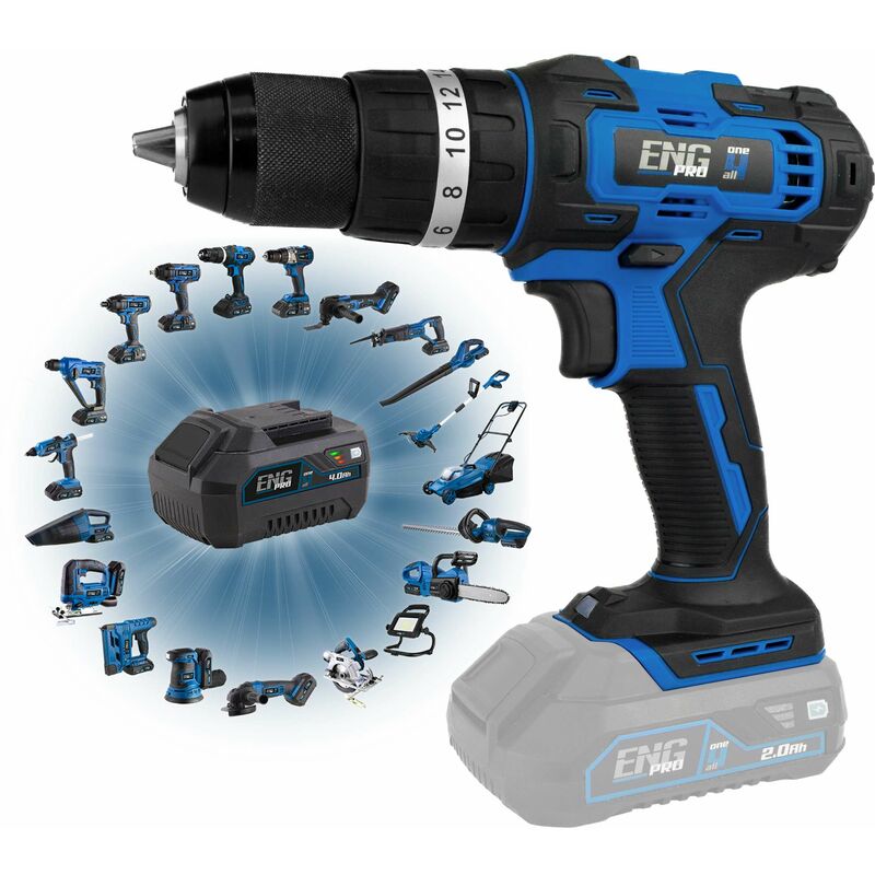 Trapano Avvitatore a Percussione - ENG PRO - 1B20-AP40-S Caratteristiche tecniche: Mandrino auto-serrante in metallo Alimentazione a batteria 20V Coppia di serraggio massima di 40 Nm 2 Velocità 0-400 / 0-1500 rpm Tasso di impatto 21000 bpm Luce a LED Velocità 0 - 1500 rpm Numero percussioni 1 velocità 0 - 6000 bpm Numero percussioni 2 velocità 0 - 21000 bpm Mandrino 2 - 13 mm Coppia massima 40 Nm Regolazioni frizione 16 Peso 1300 g Batteria inclusa No Caricabatteria incluso No Accessori inclusi: Gancio Manuale di istruzioni ITA/ENG L'avvitatore a percussione è l'alleato perfetto per professionisti e appassionati del fai-da-te che si trovano a dover affrontare una varietà di superfici e il serraggio di viti. Grazie alla sua funzione di foratura a percussione, il battente del trapano entra in azione per creare fori rapidamente ed efficacemente. Questo avvitatore, come gli altri membri della linea One4All, è alimentato da una batteria specifica da 20V non inclusa nell'articolo. Il nostro