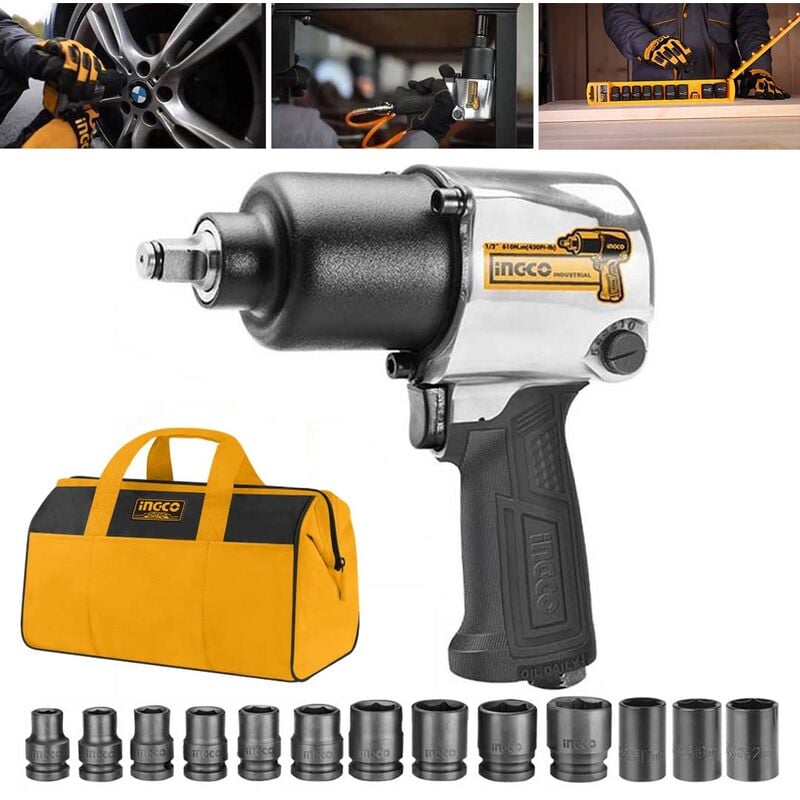 Ingco AIW12562 è un avvitatore pneumatico professionale a impulsi da 1/2" in offerta in set con il kit Ingco da 10 bussole e una pratica borsa sa 16" dove riporre molti altri strumenti oltre questi attrezzi. Questa offerta comprende: 1 Avvitatore pneumatico ad impulsi Ingco AIW12562 con 3 bussole incluse;