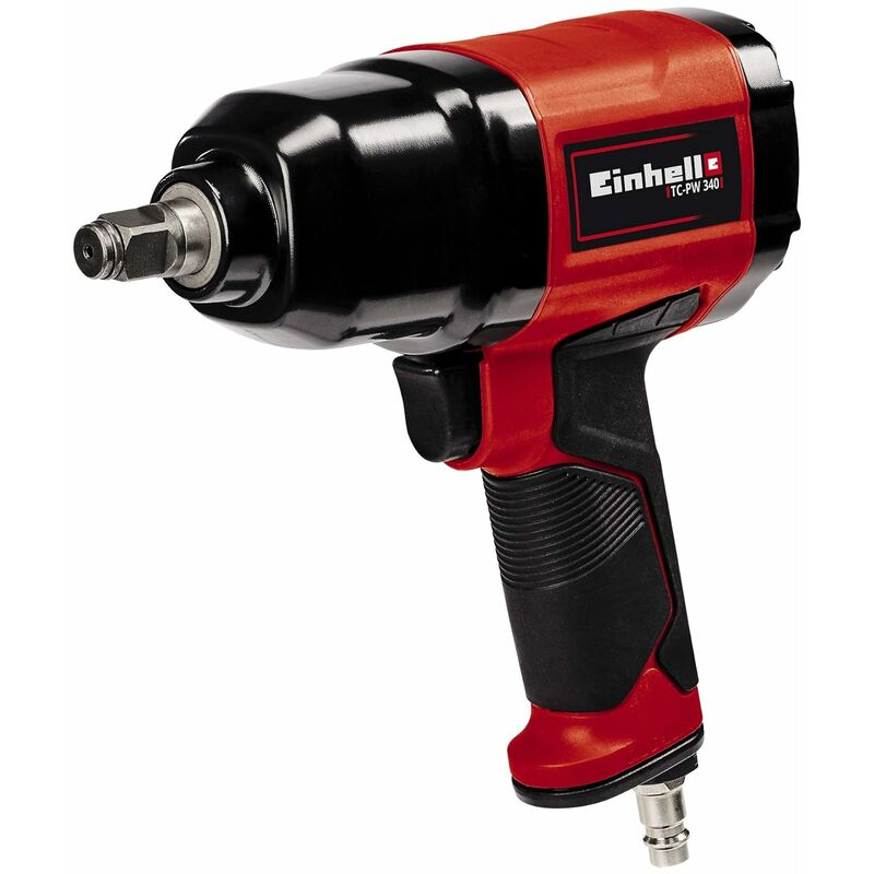L'avvitatore a percussione pneumatico TC-PW 340 di Einhell risponde perfettamente alle esigenze di chi deve eseguire lavori in casa, in officina e in garage. L'avvitatore a percussione raggiunge una coppia massima di 340 Nm. L'impugnatura antiscivolo gommata garantisce sicurezza e comodit? in qualsiasi condizione di lavoro. Essendo dotato di rotazione a sinistra (un livello) e a destra (tre livelli), l'avvitatore a percussione pneumatico ? in grado di svolgere numerose operazioni. L'avvitatore a percussione raggiunge le migliori prestazione a partire da un diametro interno del tubo flessibile di 9 millimetri. Pressione di lavoro massima di 6,3 bar, filettatura massima di 14 millimetri. Nella dotazione di consegna sono comprese 8 inserti a bussola nelle dimensioni pi? comuni di 8/10/11/13/17/19/21/22 mm, 1 boccetta d'olio e 1 raccordo rapido. In questo modo l'avvitatore a percussione pneumatico TC-PW 340 di Einhell ? immediatamente pronto per l'uso. La pratica valigetta di custodia e