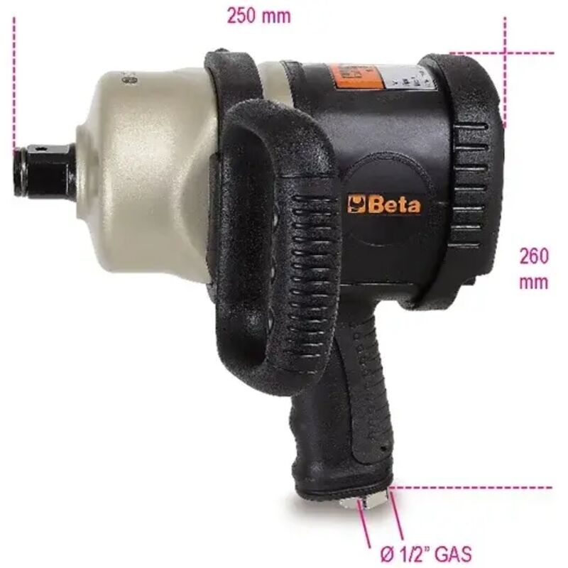 Avvitatore reversibile in materiale composito. meccanismo impulsivo doppio martello estremamente leggero e compatto dotato di maniglia ausiliaria comando d'inversione a leva tre differenti livelli di potenza in avvitamento scarico dell'aria attraverso l'impugnatura Tipologia: Reversibile in materiale composito Attacco: 1 Attacco aria: 1/2 gas Meccanismo: Impulsivo doppio martello Reversibile: S Materiale: Composito Coppia massima: 2445 nm Capacità vite/dado Cl 8.8: M36 55 mm Capacità vite/dado Cl 12.9: M30 46 mm Pressione di utilizzo: 6,2 bar Diametro interno tubo aria: 13 mm Consumo aria medio: 320 l/min Velocità libera: 4000 giri/min Peso: 7,1 kg