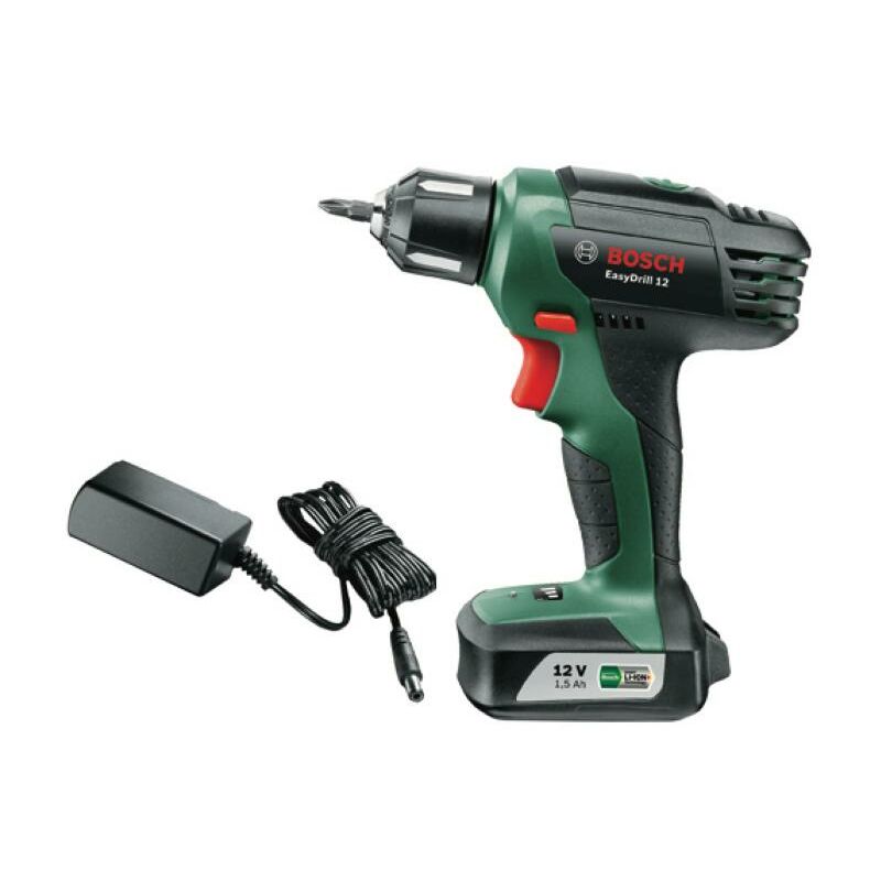 Potenza 12 Volt - 1,5 Ah, battera Litio, mandrino autoserrante AutoLock, velocita' 700 giri/min, torsione max 15 Nm, Led indicatore livello di carica, indicatore del senso di rotazione. Dotazione: caricabatteria, bit avvitamento