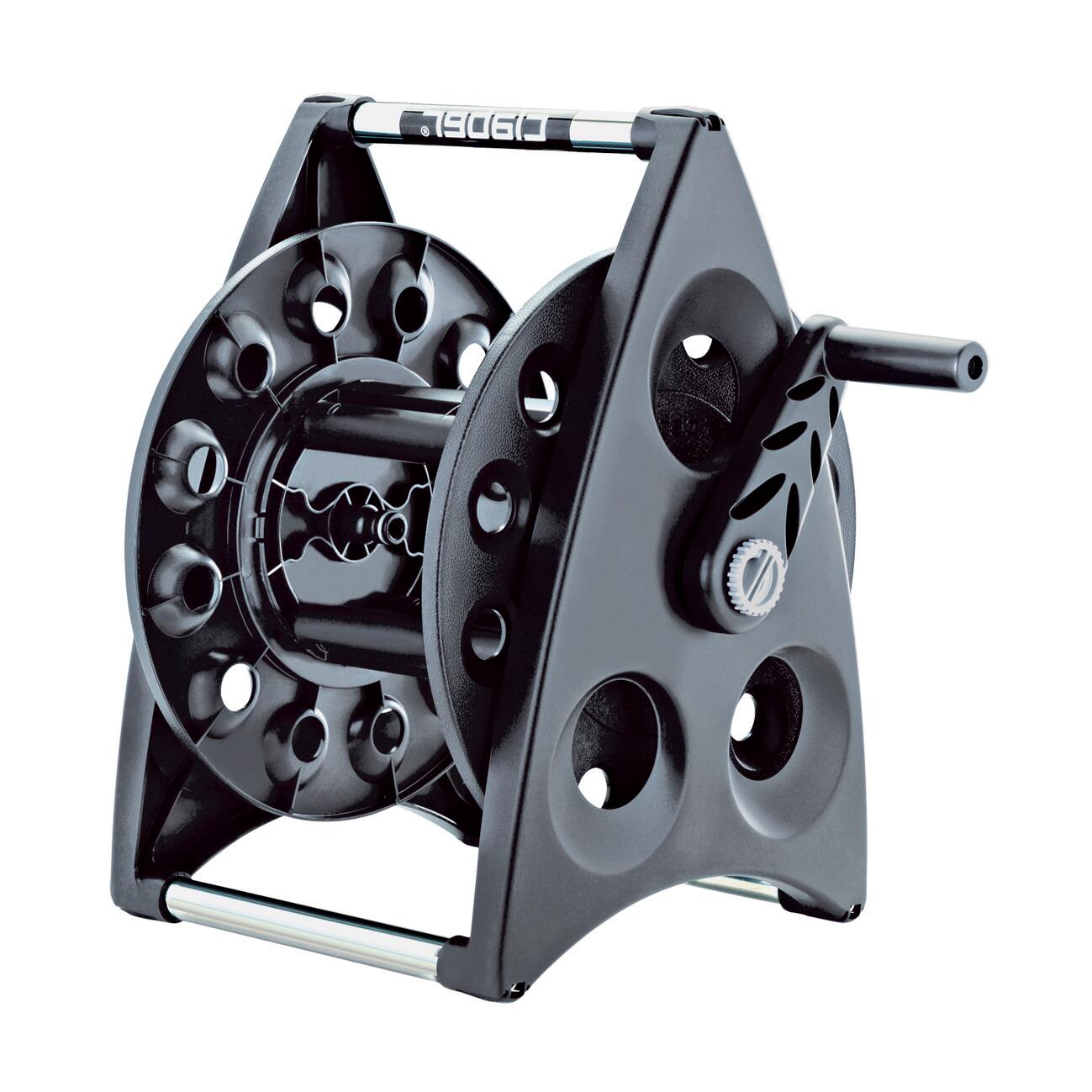 Asportabile in plastica e alluminio, tubo da 40 m da 1/2", con un raccordo automatico e due staffe da parete