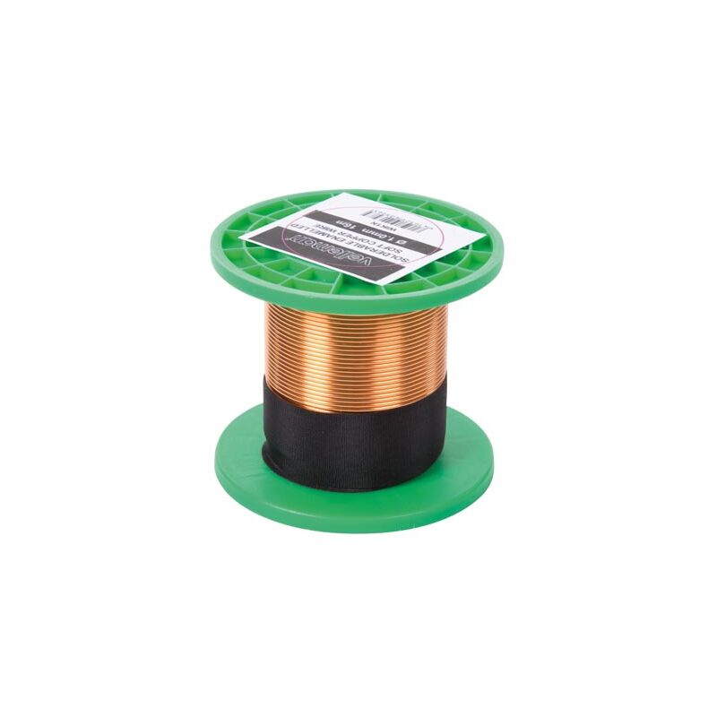 This enamelled solderable soft copper wire is used to wind coils or transformers and is supplied on plastic bobbins. Winding wire is available in a thickness varying from 0.1 to 1.5mm. The length of the wire depends on its thickness. Dati tecnici Drahtdurchmesser 1 mm Informazioni sul prodotto Primärfarben Rot,Detaillierte Primärfarben Kupfer,Zusätzliche Farben Grün,Durchmesser Einheit 65 mm,Höhe des Produkts 35 mm,Gewicht Produkt 110 g,Material Kupfer Proprietà fisiche Länge der Leitung 16 m Dati elettrici Widerstand 0.35 Ω Dimensioni dell'imballaggio 1