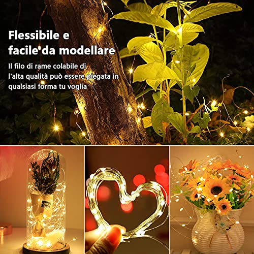 Ottieni un pacchetto 2 in 1!- Un set di due bellissime luci a ghirlanda,ogni luce di stringa è con filo di rame modellabile da 33 piedi e 100 micro LED luminosi, con un angolo di visione costante a 360 gradi che illuminano in ogni direzione. Facile e portatile per usare le luci delle fate per qualsiasi luogo tu voglia, come all'aperto, campeggio, festa, bar, matrimonio, casa, camera da letto, patio, giardino ecc.