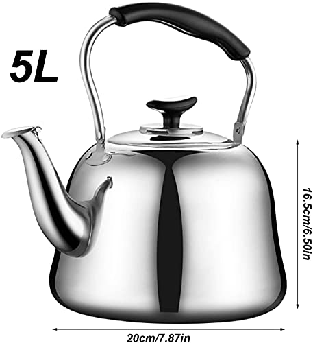 AWAING Bollitore a Fischietto Teiera per Uso Domestico in Acciaio Inossidabile Grande capacità Bollitore con fischio per Piano Cottura Manico antiscottatura 4-7 L Bollitore Acqua Gas(Color:Silver;
