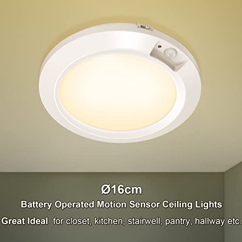 Awanber Lampada da Soffitto con Sensore di Movimento a Batteria, [2 Pezzi] 210LM Luce a Batteria con Sensore per Scale Led Plafoniera Batteria per Armadio Bagno Kitchen Cantina - 3000K Bianco Caldo