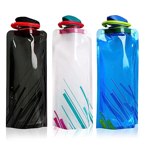 AWAVM 3 Pezzi Pieghevole Bottiglia d'acqua Portatile, Sacchetto Riutilizzabile di Stoccaggio Dell'acqua, Bottiglia d'acqua All'aperto, Ciclismo, Sport, Escursionismo (blu e nero)