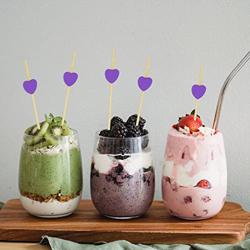 AWCIGG 100 Conteggi Bastoncini da Cocktail di Cuore Viola Stuzzicadenti Decorativi Stuzzicadenti da Cocktail per Feste Sandwich Finger Food Frutta Sandwich Stuzzichini 12cm