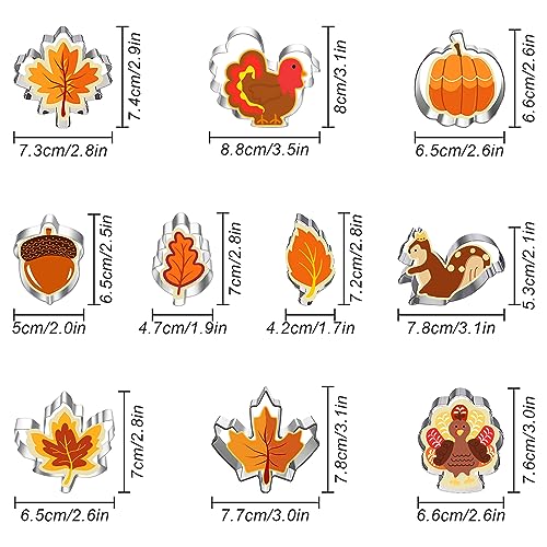 CONFEZIONE: 10 Pezzi Autunno Cookie Cutter Mould Set, contiene una varietà di forme più popolari di elementi classici autunno, come scoiattoli, foglie d'acero, tacchini, zucche, ghiande e foglie di quercia