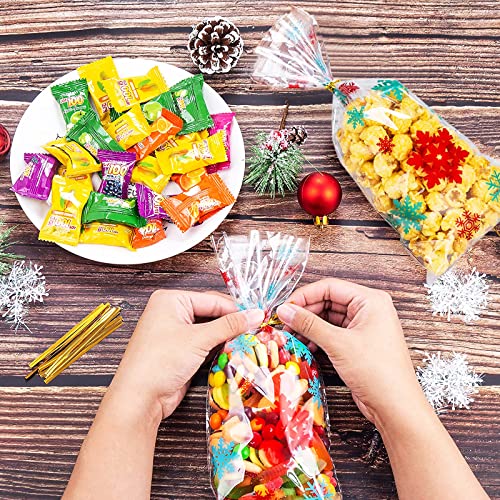 AWCIGG 100 Pezzi Sacchetti Biscotti Natale Bustine Trasparenti Biscotti Natalizie Sacchettini Buste Cellophane per Alimentari Regalo Confezioni Caramelle con Legami di Torsione
