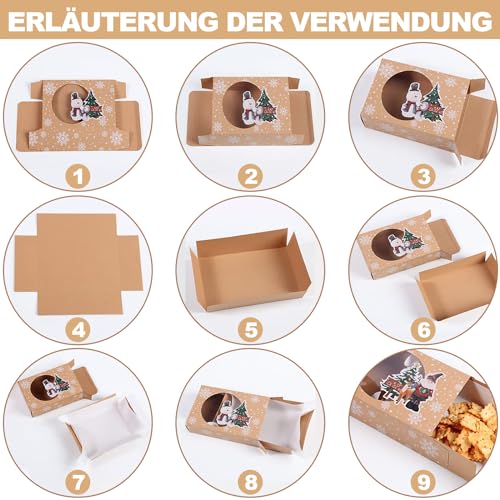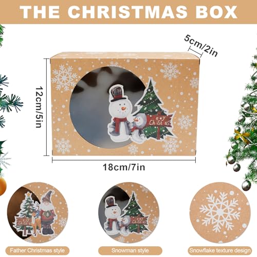 Materiale di qualità: Scatole per imballaggio kraft Natalizie realizzate in carta kraft marrone per uso alimentare al 100% con una finestra trasparente, molto adatta per una rapida visualizzazione e identificazione.