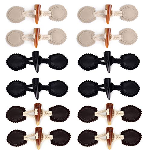 Aweisile 12 Paia Bottoni Alamari Finta pu con Bottone a Forma di Corno in Resina Bottoni Decorativi Tessuti per Abbigliamento e Montgomery Cappotto Cucire Mestiere Materiali