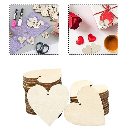 Aweisile Cuori in Legno 100 Pezzi Cuori di Legno Decorazioni Cuori Legno con Spago Cuoricini di Legno con Fori Cuore Legno Decorativi Cuoricini Decorativi per Matrimoni Feste Regali ed Arte