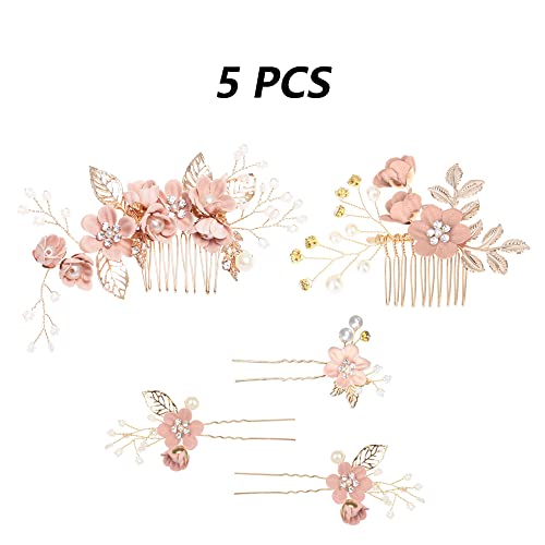 Aweisile Pettine per Capelli da Sposa 5 Pezzi Matrimonio Nuziale Copricapo Sposa Forcine Fermagli Forcine di Strass da Sposa Accessori Acconciature Sposa Copricapo Pettine Accessori per Sposa