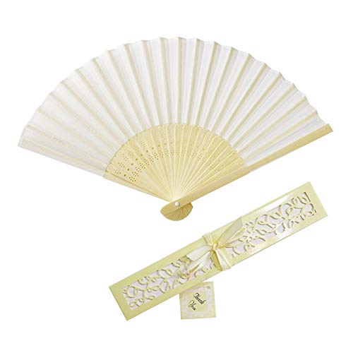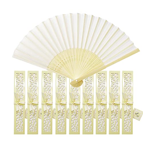 Aweisile Ventaglio Matrimonio 10 Pezzi Ventaglio Bianco Ventaglio Pieghevole Bambu Ventaglio Tessuto Ventaglio con Scatola e Nastri di Seta Decorazioni per Nozze Festa Matrimonio