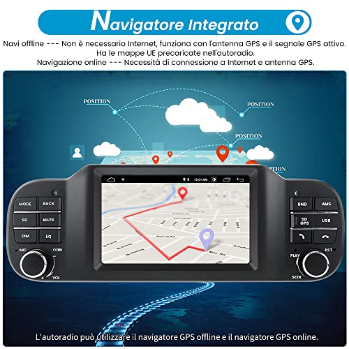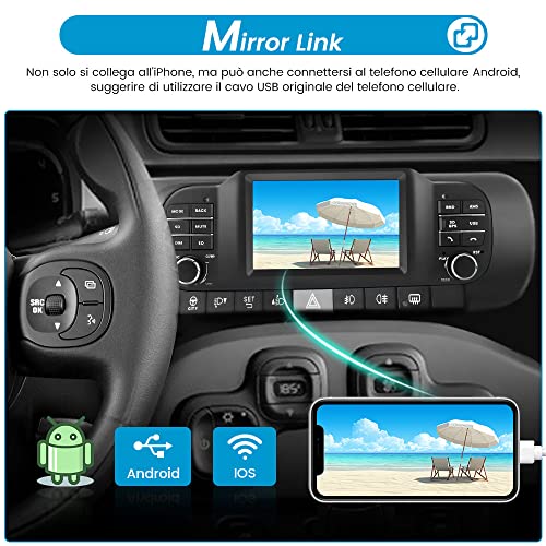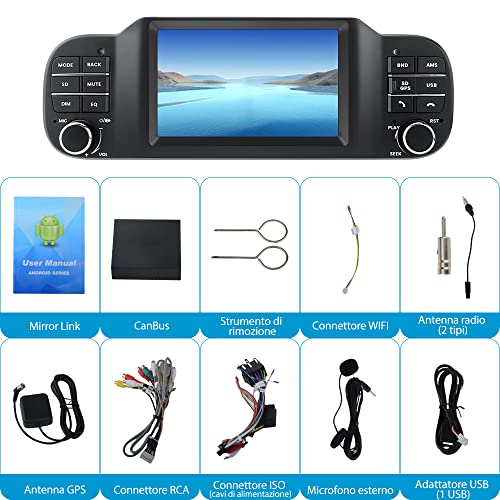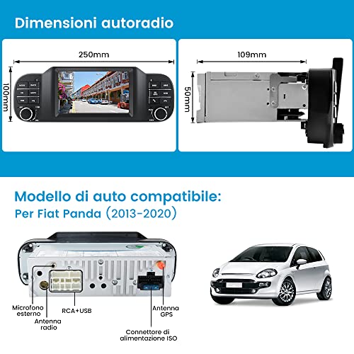 AWESAFE Autoradio 1 Din per Fiat Panda (2013-2020) 5 inch Touchscreen Android 10 (2G+32GB) Car Radio con GPS Bluetooth WIFI SD USB Comandi al volante Mirror Link