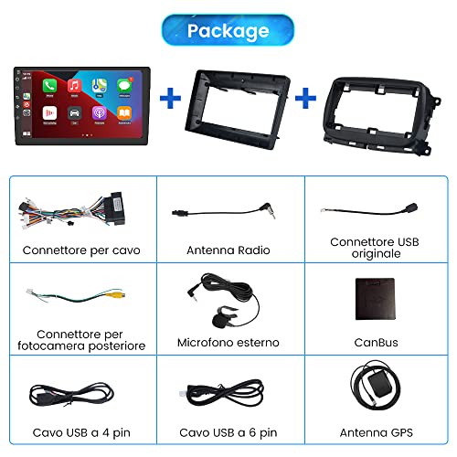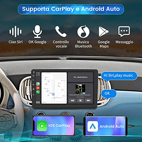 AWESAFE 9 Pollici Autoradio per Fiat 500 (2015-2019) Android 10 (2G+32GB) Car Radio Tablet con CarPlay e Android Auto WIFI Comandi al volante (Autoradio + 2 cornice esterna)