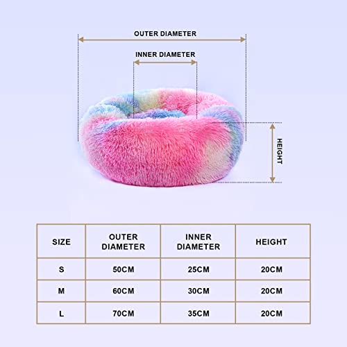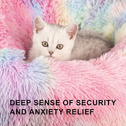 Awidely Cuccia per Cani 70 Cm, Cuccia per Cani da Interno, Cuccia per Cani da Interno Lavabile Circolare Antiscivolo Super Morbida, Arcobaleno