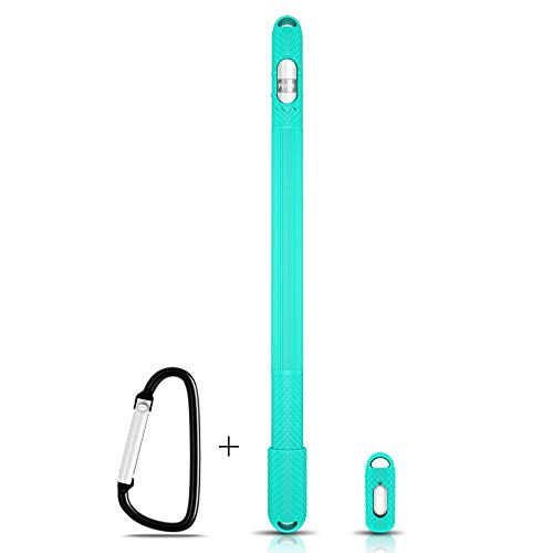 AWINNER Custodia in silicone compatibile con Apple Pencil Holder Sleeve Skin Pocket Cover accessori per iPad Pro, con tappo di ricarica, cover protettiva per pennino e adattatore Lightning Cyan