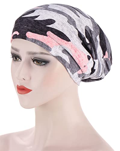 Awlsyj Berretto da donna a turbante, foderato in raso, per il sonno, con copricapo, chemio, cancro, copricapo, 3 PZ Leopardo Nero Rosa Camouflage, Taglia unica