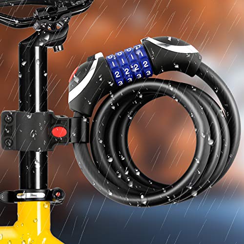 Filo di acciaio grassetto da 12 mm garantisce sicurezza e praticità. Rivestimento in PVC per una robusta resistenza al taglio, rende questo blocco per la password della bicicletta più resistente e resistente ai graffi, inoltre non si rompe o si rompe a basse o alte temperature