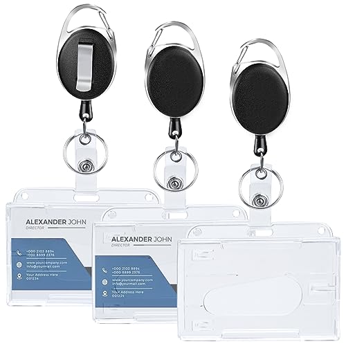 Awumbuk Porta Badge Retrattile, 3 Pcs Trasparenti ID Portabadge Rigido Portachiavi Allungabile per Carte di Lavoro e di Trasporto Carte di Studenti Porta Badge Infermiere