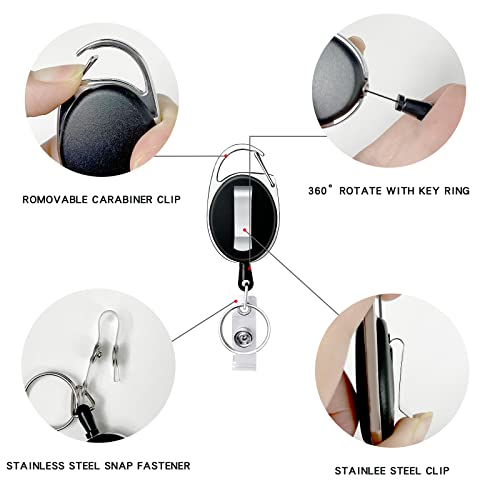 【Facile da trasportare】:L'porta badge retrattile si aggancia saldamente a indumenti, zaini e fibbie di cinture. Utilizzate la vostra carta d'identità sempre e ovunque per evitare di perderla.