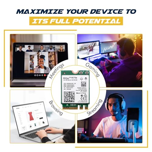 AX1675x Wi-Fi 6E Killer Series Tri Band 2.4/5/6 GHz Upgrade | 2.4 Gbps | Bluetooth 5.3 Support | M.2 PCIe | 802.11ax No vPro Performance & Gaming Model AX210.NGWG.NVX