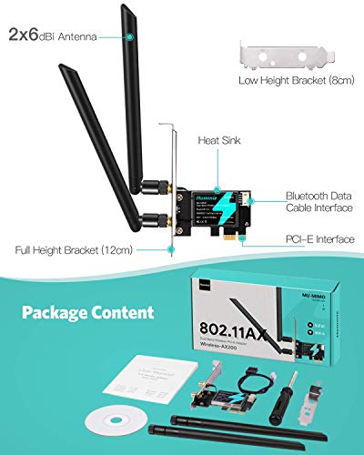 Pci WiFi 6 con AX200, Scheda Rete Wireless 802.11AX 2974 Mbps Dual Band 5 GHz / 2,4 GHz, Scheda WiFi pci Express con Bluetooth 5.0, WiFi 5ghz pci per Desktop, Windows 10 64 Bit, Linux 5.1