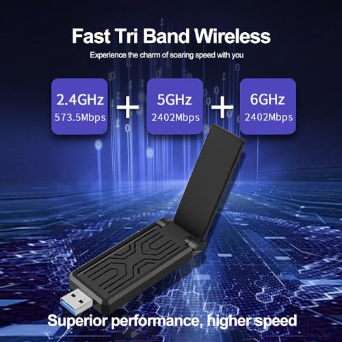 Ampia compatibilità: l'adattatore WiFi AX 5400Mbps è altamente compatibile, rendendolo adatto a vari dispositivi. Funziona perfettamente con PC desktop e laptop con Windows 11/10 (32/64bit), 802.11 ax/ac/a/b/g/n, garantendo una configurazione senza problemi e connettività wireless affidabile. Nota: Questo dispositivo wifi può funzionare solo per 5Ghz e 2.4Ghz in Windows 10 può funzionare per 6Ghz, 5Ghz e 2.4Ghz in Windows 11 (se il router può funzionare per 6Ghz)