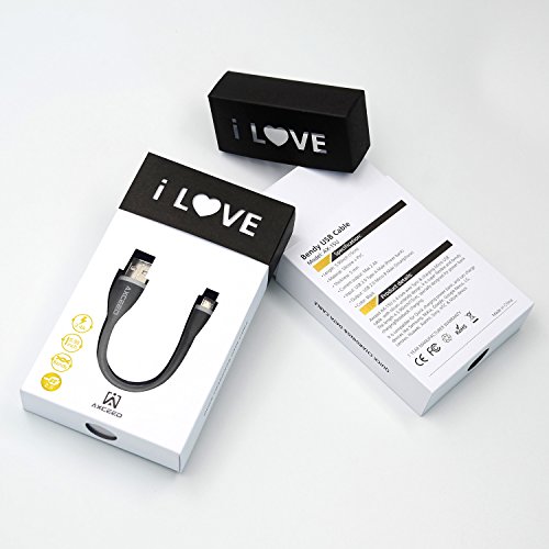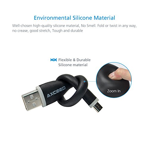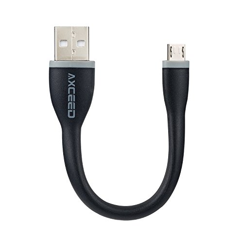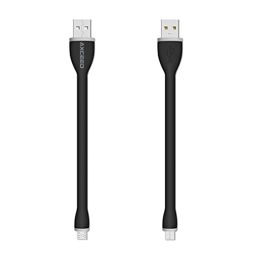 Axceed 5.9inch Short Micro USB Cable for Power Bank Bendy & Durable Silicon Support SYNC & Charging Black