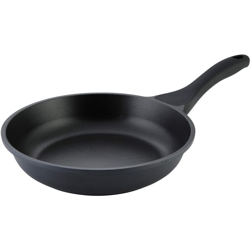 Axentia padella in alluminio pressofuso Ø ca. 20 cm Blackline Completamente nera: ecco come si presenta la moderna padella antiaderente della serie Blackline. Colpisce per numerosi vantaggi: con un diametro di ca. 20 cm, la padella è adatta a tutti i tipi di piani cottura, compresa quella a induzione e quindi versatile. La padella antiaderente induzione colpisce anche per il suo rivestimento ILAG estremamente resistente ai graffi. Questo rivestimento antiaderente a doppio strato garantisce resistenza della superficie del rivestimento e un buon effetto antiaderente. È destinata all'uso quotidiano e semplice e ideale per la frittura a basso contenuto di grassi. Design elegante: il manico curvo e la forma rotonda della padella si abbinano bene e hanno una dimensione totale di ca. 40 x 4,5 x 20 cm. Ciò significa che l'utile padella si adatta anche a cassetti bassi o armadi stretti. La combinazione perfetta: la serie Blackline comprende altre padelle e pentole a cui si abbina perfettamente