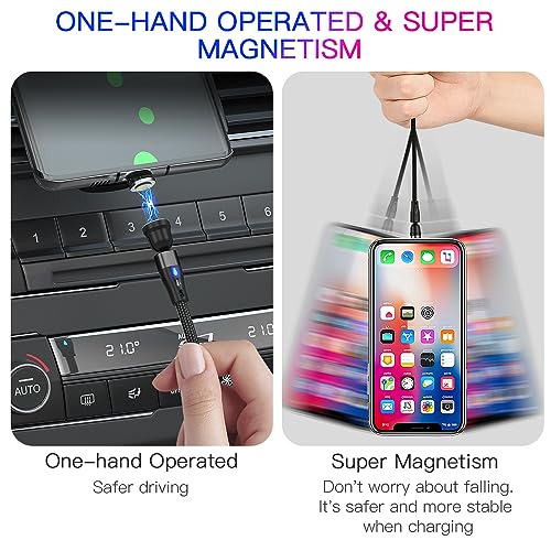 【VERSIONE AGGIORNATA ROTAZIONE 540°】 Il cavo di ricarica magnetico a forma di L di 180° e il design della testina magnetica rotante a 360° rendono la ricarica più comoda, può capovolgere qualsiasi telefono senza sforzare il cavo di alimentazione per appenderlo e non scollegarlo. Il design umanizzato rende più comodo e comodo giocare, guardare video e leggere e-book durante la ricarica.