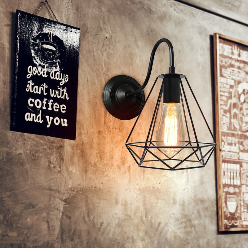 • Le applique da parete industriali in ferro battuto nere, struttura semplice senza perdere l'atmosfera, piene di luci creative a gabbia, sono la scelta perfetta per la decorazione domestica. • Utilizzando metallo di alta qualità, il paralume in metallo è ispessito, con una forte capacità portante e un lungo servizio life. • Tutti gli accessori per l'installazione sono già inclusi nella confezione. L'installazione richiede solo pochi minuti e il funzionamento è molto semplice. • La lampada da parete è ideale per soggiorni, luoghi di lavoro, cucine, scale, corridoi, sale espositive, bar, ecc. Specifiche: • Prodotto: lampada da parete con gabbia diamantata in metallo • Stile: stile industriale rosso • Colore: nero • Dimensioni della gabbia: Ø20 cm * 20 cm (diametro * altezza) • Diametro base: Ø14cm • Dimensioni consigliate della stanza: 10-15 mq • Voltaggio: 220V, adatto a tutte le lampadine a spirale E27 (senza lampadina) • Specifiche illuminotecniche: Potenza: 25-60W (massimo 60 W) Il