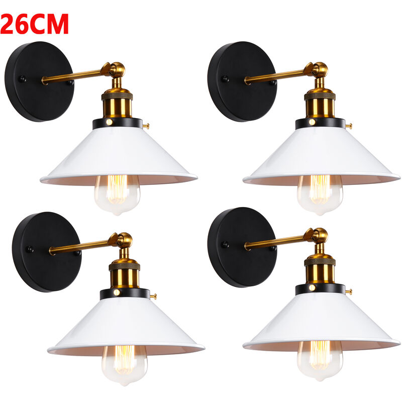 Informazioni su questo articolo ◂Tipo di illuminazione: Lampada da parete, plafoniera, lampada da soffitto ◂Design: industriale vintage retrò ◂Dimensioni del paralume: 26 cm x 19 cm ◂Lunghezza barra: 16 cm ◂Diametro del disco: 12 cm ◂Colore: disco bianco nero e bronzo ◂Presa: E27 ◂Lampadina: Edison/LED/Risparmio energetico/alogena (lampadina non inclusa) ◂Materiali: metallo ◂Tensione: 220-240 V ◂Potenza: 60 W massimo ◂Confezione: 4 paralumi, 4 barre, 4 dischi, 4 accessori di installazione Caratteristica: &proiettile;