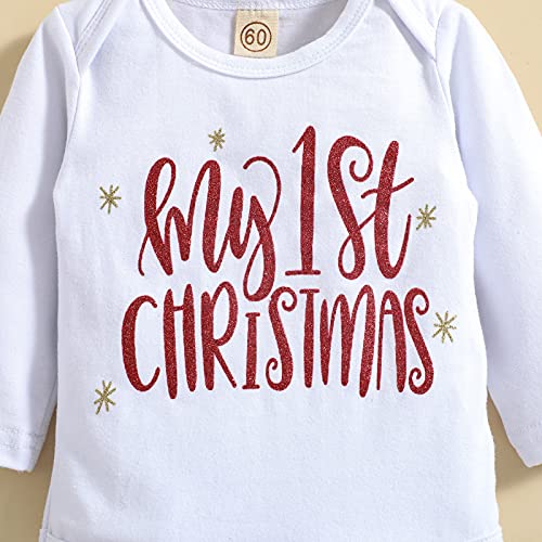 Axiamoncha Neonate Natale Tre Pezzi Moda Casual Party Clothes Set Lettere Stampate Pagliaccetto Manica Lunga + Gonna a Vita Alta in Filato Rosso + Fascia per Capelli (Rosso, 6-12 Mesi)