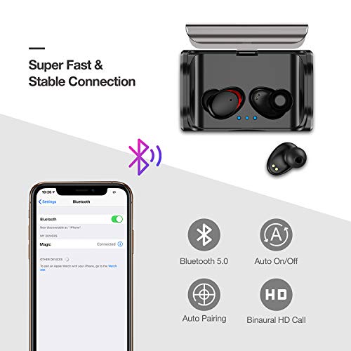 Bluetooth 5.0 & Abbinamento Automatico : AXLOIE Auricolari Wireless adottano la tecnologia Bluetooth più avanzata per garantire una trasmissione più rapida e stabile, un consumo inferiore, una distanza senza barriere fino a 20 metri. Gli auricolari supportano la chiamata HD binaurale e sono applicabili a tutti i dispositivi abilitati Bluetooth. Presi dalla custodia di ricarica, saranno accoppiati automaticamente e la prossima volta si ricollegano con l'ultimo dispositivo connesso.