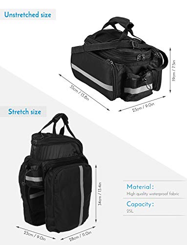 Capacità sovradimensionato espansione: sacchetto della bicicletta sovradimensionato, una tasca principale e tasche laterali a tendina laterali per soddisfare tutte le esigenze.