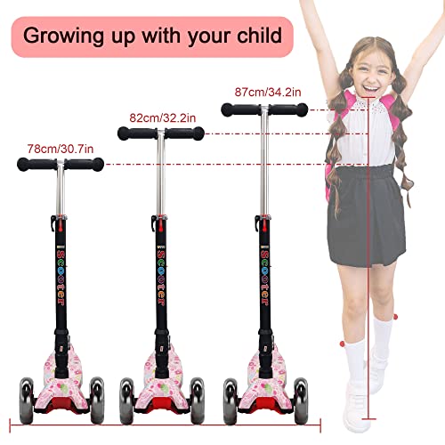 AXYWINBO Monopattino Bambina,Monopattino 3 Ruote,3 Altezza Regolabile, Calcio Scooter Pieghevole per Bambini 4-13 Anni, Scivola Liscio e Stabile
