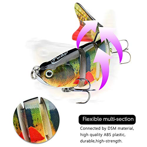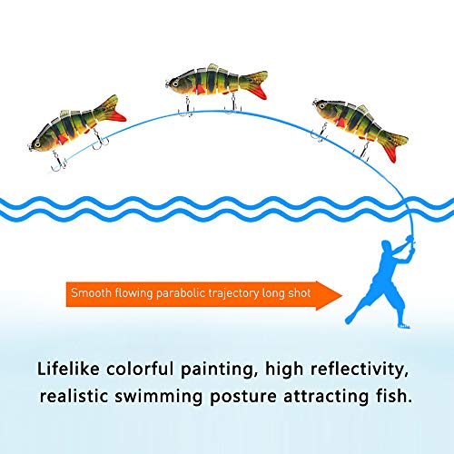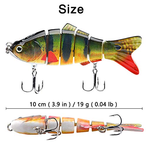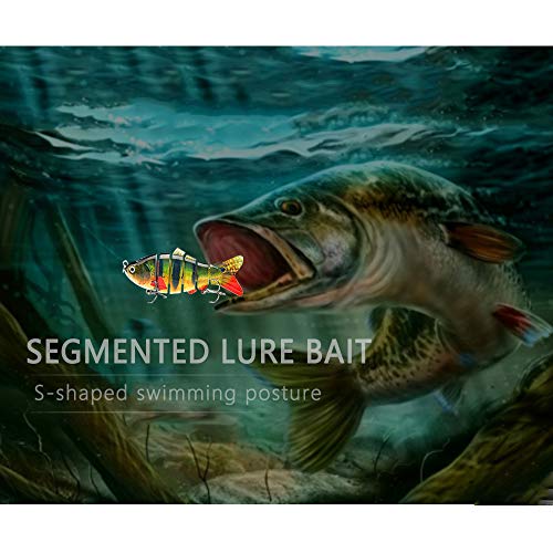 AYADA Esche Artificiali Esca Snodato di Pesca con Esche Artificiali 3D Occhi 4 Segmento Bait Ganci Artificiale Swimbait Crankbait,Esca Pesca Minnow Trota Luccio Spigola Bass(5 Pezzi)